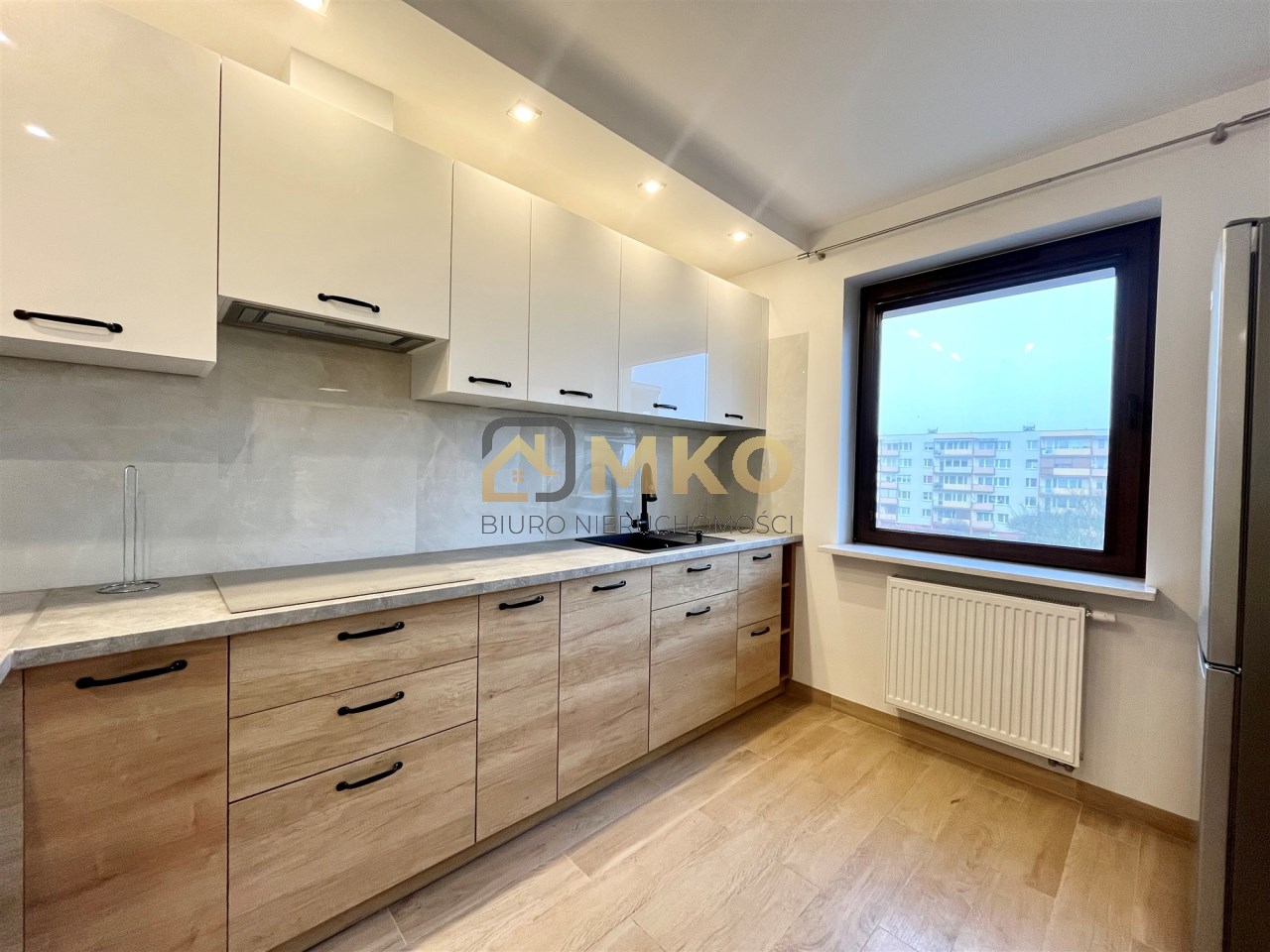 - Kuchnia: Nowa, w pełni wyposażona – lodówka, zmywarka oraz nowoczesne szafki zapewniające dużo miejsca do przechowywania.